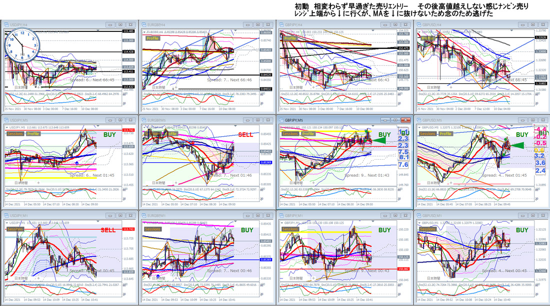 2021.12.14(火)ポンド相場環境 4時間レンジで下位足もフラクタルなレンジ