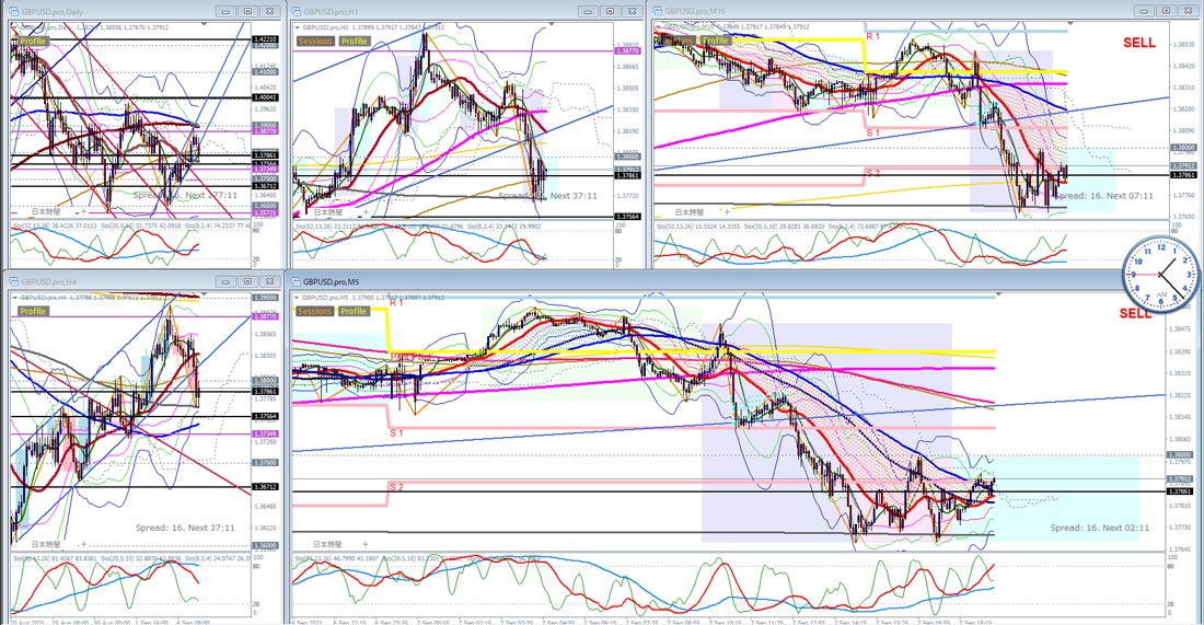 GBPUSD 4時間↑1時間→短期↓