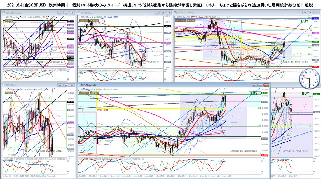レンジ下端から上昇し短期レンジブレイク↑ その押し目買い 時間考えずにエントリー 直近高値手前で逃げ